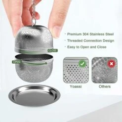 【Conception Unique】 Notre boule filtre à thé adopte la conception de fil de compression, assure la performance parfait d’étanchéité, qui peut mieux bloquer les feuilles de thé pendant l’infusion. Le bouchon à vis facilite l’ouverture et le serrage de la boule filtrante.