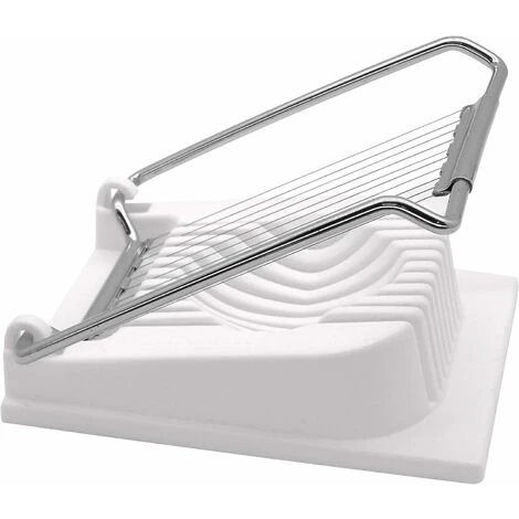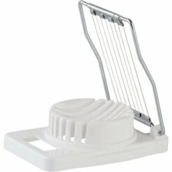 Description coupeur d’oeufs en plastique blanc avec grille de coupe pour couper tous vos oeufs!
