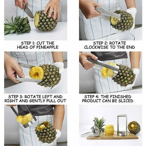 1 personne évide facilement les ananas, coupe les ananas en douceur avec peu ou pas de pression, plus rapidement et plus facilement