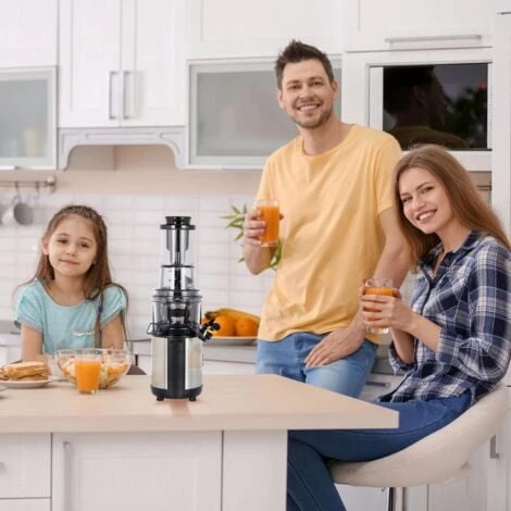 Grâce à la goulotte d’alimentation extralarge, vous pouvez mettre toutes sortes de fruits et légumes, petits et grands directement dans l’extracteur de jus sans les couper en deux ou les hacher. Il peut accueillir le fruit entier non coupé. Cela vous fera économiser du travail et un temps précieux.