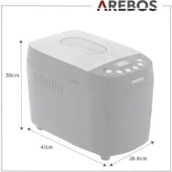 - Dimensions de la machine à pain : 41 x 26,8 x 30 cm