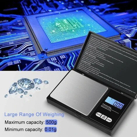 【Haute Précision】 Un capteur de très haute précision peut être utilisé pour obtenir un pesage précis de 0,01 g à 500 g. Il convient parfaitement aux objets précieux qui nécessitent une grande précision de pesée. Idéal pour Les Petits Objets, pour peser