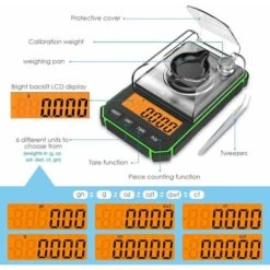 « couleur comme indiquéTaille:22.86 x 10.67 x 5.08 cmPoids :300 grammesBALANCE DE PRÉCISION : La balance numérique est fabriquée avec des capteurs de haute précision pour vous fournir un poids précis de 0.006g à 50g. Facile à nettoyer et à utiliser, vous garantir une lecture de pesée précise. La plage d’erreur est de ± 0.05g.CONVERSION DE 6 UNITÉS : balance de précision comprend toutes les mesures nécessaires pour une conversion facile du poids, convertir la mesure entre en g/oz/ozt/dwt/ct/gn. Pratique pour vous permettre de choisir l’unité appropriée en appuyant sur le bouton de mode.ACCOMPAGNÉ DE 50G DE POIDS D’ÉTALONNAGE et PINCETTES ÉLECTROSTATIQUES : t balance de précision facile à recalibrer pour assurer la précision, Il est conçu pour être fort, durable, et format de poche pour la plupart de vos besoins de pesée portables, comme les aliments, les comprimés, la poudre, les pierres précieuses, pièces de monnaie, bijoux, or, etc. Quelle balance de poche utile!INDICATION INTELLIGENTE : Il peut alerter les utilisateurs pour faible puissance de la batterie, la surcharge, et le placement de surface inégale. Auto-off après 180 secondes d’inactivité, ce qui contribue à préserver la puissance et l’efficacité batterie. DESIGN ÉLÉGANT : Cette petite balance vous fournit des lectures claires avec un écran LCD rétroéclairé, et l’acier inoxydable durable le rend fort et convivial, avec surface anti-rayures, cette balance de cuisine numérique est durable, et facile à nettoyer. Design minimaliste et compact faites-en une balance de poche portable à emporter partout. »