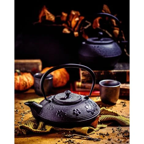 La théière, entièrement en fonte, est le partenaire idéal, que ce soit pour les cérémonies de thé ou pour un thé entre les deux.