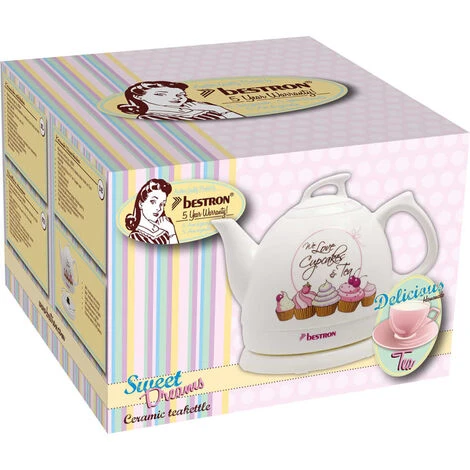 Cette bouilloire à thé électrique puissante DTP800SD de Bestron apportera de l’eau à ébullition en un rien de temps.