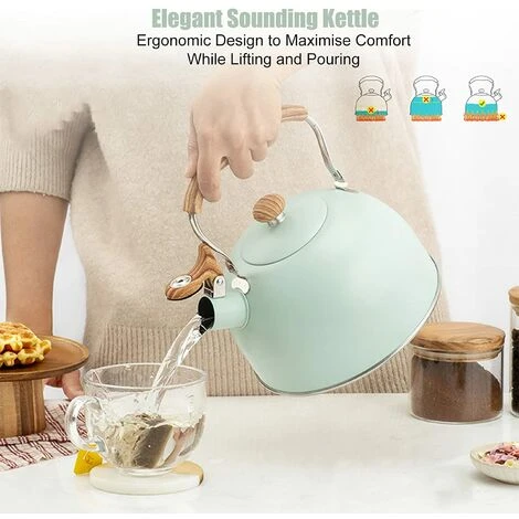 Sifflet clair : un sifflet puissant vous permet d’entendre dans les autres pièces lorsque l’eau bout. Au lieu de rester dans la cuisine jusqu’à ce que l’eau bout, vous pouvez vous concentrer sur les tâches ménagères, les films, la musique ou d’autres