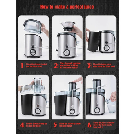 - ?? Conception conviviale et double protection : le couvercle reste plus serré lors de l’extraction de jus avec le bras de verrouillage de sécurité, et l’extracteur de jus s’arrête automatiquement une fois que le moteur surchauffe. Une alimentation électrique instable ou un assemblage et une conception incorrects inférieurs à 60 dB peuvent également éloigner votre famille de bruit.