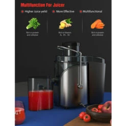 -  ? ? 3 & amp; quot ; Toboggan extra large : 3 & quot ; La large goulotte d’alimentation vous permet de presser des fruits et légumes entiers sans pré-coupe. Structure compacte et simple. Facile à monter et à démonter.