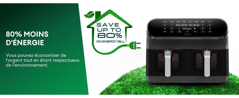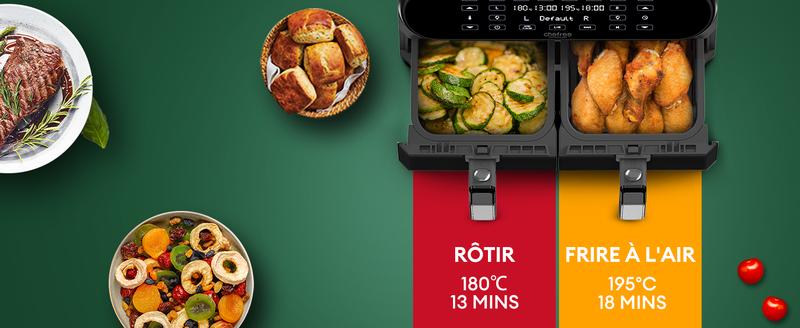 Vous pouvez donc cuire votre poulet et vos frites en même temps. La fenêtre transparente de chaque compartiment ainsi que les lumières intégrées vous permettent de surveiller la cuisson de vos aliments sans avoir à ouvrir les tiroirs.