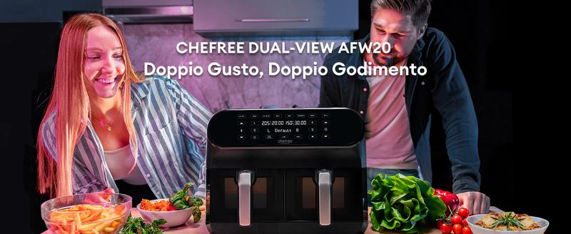 Ultenic AFW20 – Friteuse sans huile – Double Compartiment – Fenêtres visibles – 2400 W – 8 L – 8 Programmes – Noir![]()