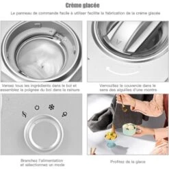 - 【Machine à Glaces 3-en-1】Il y a 3 modes de fonctionnement pour satisfaire vos besoins et faire différents types de desserts. Vous pouvez régler le bouton de contrôle si vous voulez soit uniquement mixer, soit refroidir ou soit produire la glace (maximum 40 minutes) selon vos souhaits. Le panneau de commandes est simple à utiliser et facilite la fabrication maison de desserts.