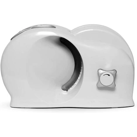Trimmer blanc. Puissance 150 W. Lame en acier inoxydable (190 mm). Bouton à 3 vitesses. Glissière sûre et amovible. Réglage de l’épaisseur de coupe. Plateau à découper. Boîtier pliable. 230 V. 50Hz.