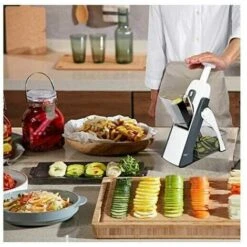 Facile Ă utiliser : ce coupe-lĂ©gumes multifonctionnel est simple Ă utiliser et ne nĂ©cessite pas de changer de lame pour chaque tranche, il suffit de tourner le bouton et ajustez l’Ă©paisseur des tranches qui s’accumulent directement dans le rĂ©cipient en plastique. Les pièces sont amovibles et faciles Ă nettoyer au lave-vaisselle.