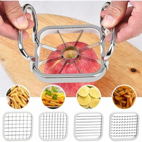 ➣ Trancheuse à légumes multifonction 5 en 1. Coupe frites manuel vous permet de déchiqueter, couper et couper facilement des légumes. 5 lames différentes, déchiqueter, couper, couper, etc., peuvent répondre aux besoins de votre cuisine.