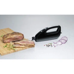 Le couteau électrique pratique de Rommelsbacher facilite le travail quotidien pour couper le pain, les pâtisseries, la viande et la volaille. La poignée de forme ergonomique rend l’appareil facile et confortable à utiliser. La paire de lames de couteau à denture fine est idéale pour découper parfaitement en morceaux les aliments les plus délicats tels que les tartes à la crème ou à la crème pâtissière.