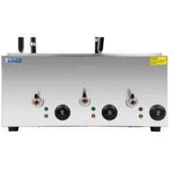 L’appareil a été spécialement conçu pour le domaine professionnel et s’adapte parfaitement dans les snacks, les cantines ou les restaurants. Que ce soit des Spaghettis, des Tortellinis ou des nouilles, toutes les variétés de pâtes peuvent être préparées parfaitement et en un tour de main. Le cuiseur à pâte électrique dispose de 3000 Watts de puissance ainsi que de 4 passoires en maille fine (13,5 cm de diamètre) en acier inoxydable antirouille, lesquelles permettent de cuire sans stress, 4 variétés de pâtes différentes simultanément. De plus, grâce à la structure en maille fine des passoires, le cuiseur à pâte peut également être utilisé pour cuire des œufs voire des légumes blanchis. Le récipient GN 1/3 offre un emplacement pour maintenir à chaud de manière optimale vos sauces à pâtes. Afin de cuire simultanément différentes variétés de pâtes, le cuiseur à pâte dispose de trois régulateurs de température différents. Cet appareil puissant bénéficie d‘une finition de qualité le rendant ainsi robuste et durable.