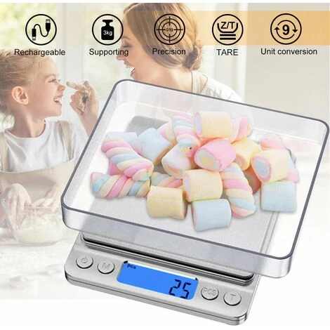 - ÉQUIPEMENT ALIMENTAIRE DE QUALITÉ SUPÉRIEURE – Balance alimentaire seulement 169 g, format de poche, éléments de pesage de 0,1 g à 3000 g Mesure de précision. Surface en acier inoxydable et livrée avec deux plateaux en plastique ABS, utilisation plus sûre. (Les balances de cuisine numériques sont conformes à CE / ROHS certifié)