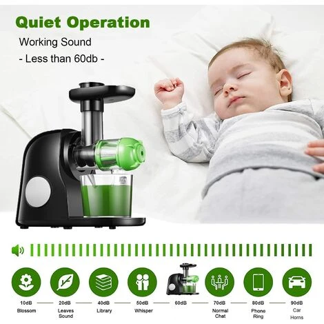 【Leise und leicht zu reinigen】 L?uft weniger als 60 Dezibel. Verfügt über ein Sicherheitsschloss-Design und einen Schraubenschlüssel, hilft Ihnen, in wenigen Minuten zu montieren und zu demontieren. Hat RüCKW?RTSFUNKTION, um ein Festsitzen zu vermeiden und hilft Ihnen beim Reinigen. Alle abnehmbaren Teile sind aus hochwertigen, lebensmittelechten Antioxidationsmaterialien hergestellt, lassen sich mit einer Bonusbürste leicht reinigen.