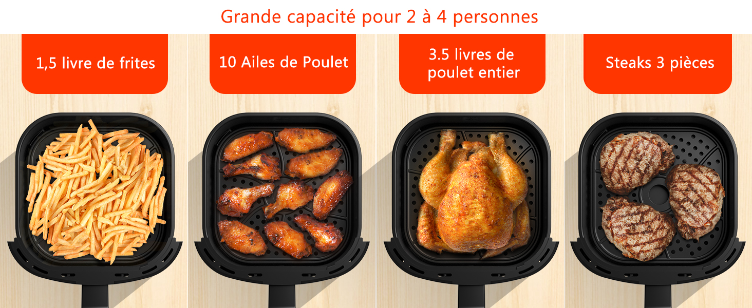 - Gain de place: cette friteuse à air compacte a une grande capacité de 4 L, peut contenir 10 ailes de poulet ou 1,5 livre de frites et sert une famille de 2 à 4 personnes. Facilement avec une taille adaptée au comptoir, cette friteuse à air numérique est un excellent électroménagers de cuisine pour votre famille.