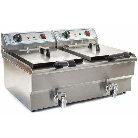 La double friteuse électrique de 2×16 litres est également équipée de robinets de vidange permettant d’évacuer l’huile en toute simplicité.