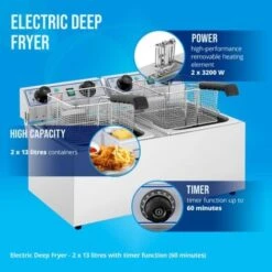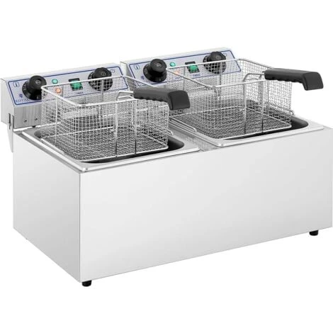 Friteuse électrique double de 2×13 litres en acier inox avec minuteurs, cuves amovibles et zones froides
