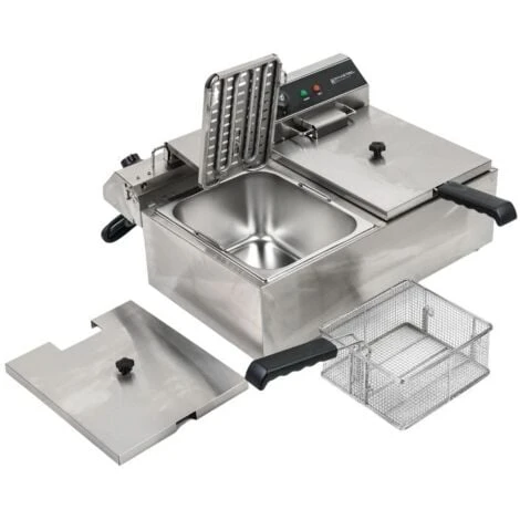 Cette Friteuse Professionnelle est idéale pour les professionnels de la restauration. Entièrement réalisée en acier inoxydable, elle dispose de deux cuves d’une capacité de 10 L chacune. Solide et durable, elle convient parfaitement pour les snacks et les fast-food. Ses thermostats permettent de régler la température jusqu’à 200°C.
