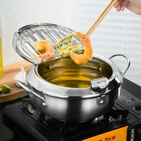 Friteuse Profonde En Acier Inoxydable De Style Japonais Avec Couvercle De Thermomètre Et égouttoir à Huile Poêle Antiadhésive Pour La Cuisine