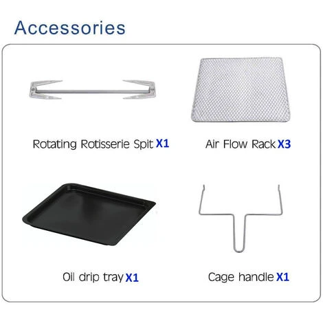 7 accessoires dont pack rôtisserie, panier à frites, déshydrateur alimentaire, …