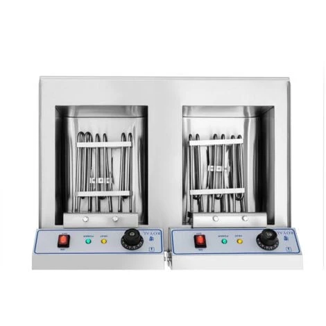 Les deux résistances de 6 kW permettent un réchauffement rapide de l’huile à haute température. Une fois la température souhaitée atteinte, les thermostats de la double friteuse électrique 2 x 16 litres RCKF-16D assurent automatiquement la constance de la température.