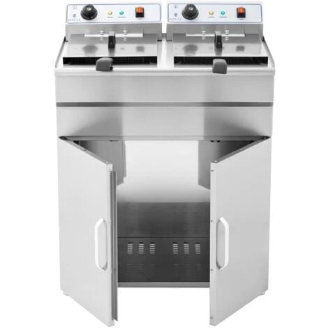 La double friteuse électrique sur coffre de 2 x 16 litres RCKF-16D est également équipée de deux robinets de vidange permettant d’évacuer l’huile en toute simplicité. Les deux paniers ont des dimensions de 25 x 23 x 12 cm. La capacité maximale d’huile est de 2 x 10 litres. Faites une bonne affaire en achetant la double friteuse électrique sur coffre de 2 x16 litres RCKF-16D de Royal Catering!