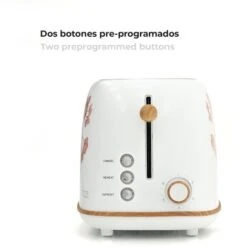 Le grille pain Caprizze Kaito est parfait pour les amateurs de design et de bonne cuisine. Vos toasts seront grillés à la perfection grâce à ses 6 niveaux réglables. Il dispose de deux fentes extra larges de 3,8 cm et 13,5 cm de long. Ses trois fonctions intégrées vous permettent de réchauffer, décongeler et arrêter le grillage.nnCaractéristiques :n- Mesures : 29,2x18x19 cm.n- Matériau : acier inoxydable et polypropylène.n- Couleur : blanc mat avec des décorations en rouge, orange et des détails effet bois.n- Poids : 1,20 kg.n- Puissance : 815W Faible consommation.n- Température de travail : 6 niveaux.n- Système de sécurité : Autostop.n- Thermostat : Oui.n- Tiroir à miettes : Oui.n- Base antidérapante : Oui.n- Contrôle : Analogique.n- Longueur du câble : 75 cm avec protège-câble intégré.n- Voltage : 220-240V.n- Modes/Fonctions : 3.n- Régulateur de température : Oui.n- Certificats : CE, GS, LFGB et RoHS.