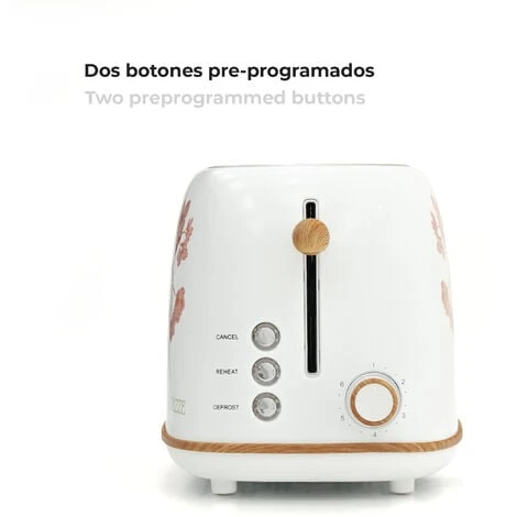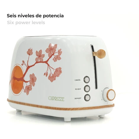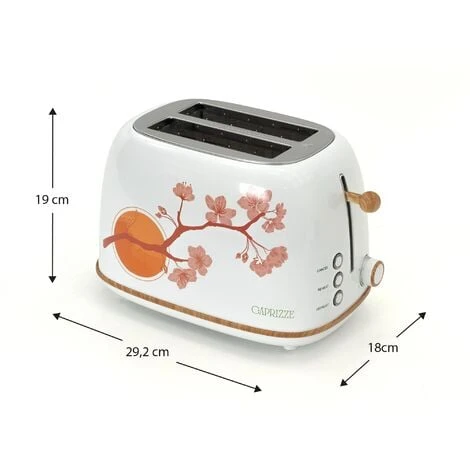 Grille Pain Caprizze Kaito Avec Double Fente Extra Large 6 Niveaux De Grill Décoration Florale Et Effet Bois Blanc Mat