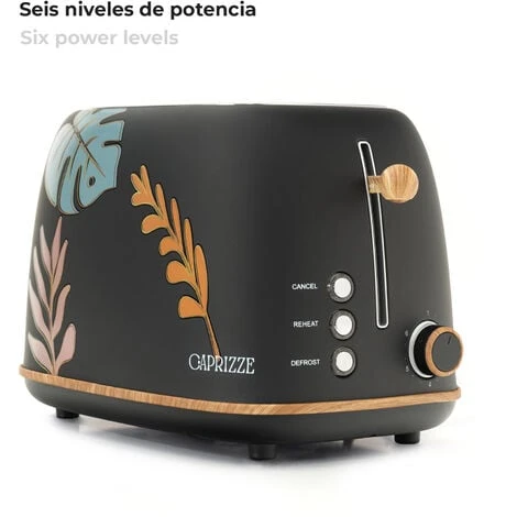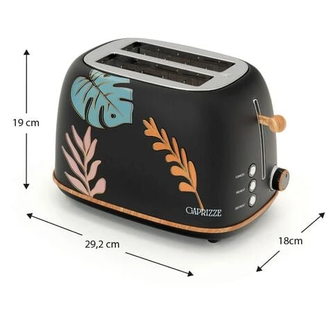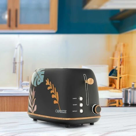 Grille Pain Caprizze Kaito Avec Double Fente Extra Large 6 Niveaux De Grill Décoration Florale Et Effet Bois Noir Mat