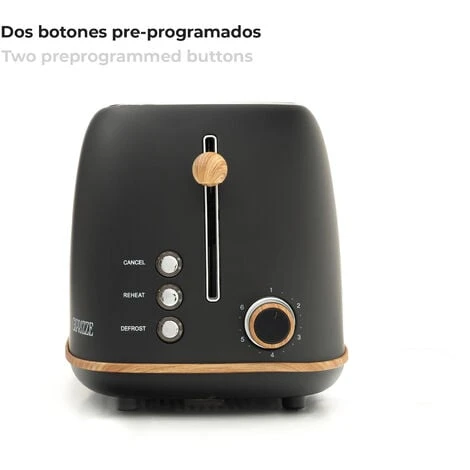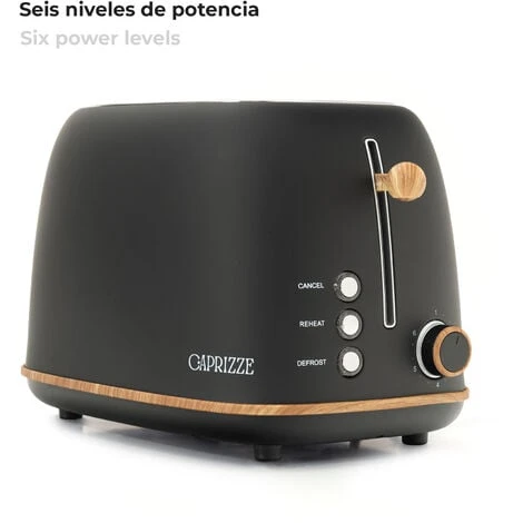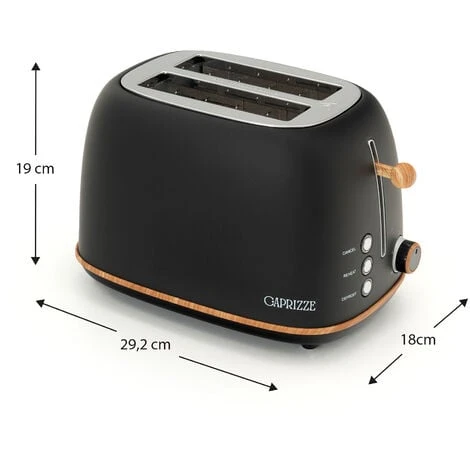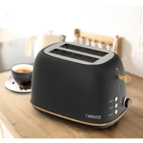 Grille Pain Caprizze Kaito Avec Double Fente Extra Large 6 Niveaux De Grill Design Vintage Avec Effet Bois Noir Mat