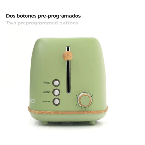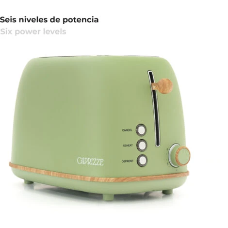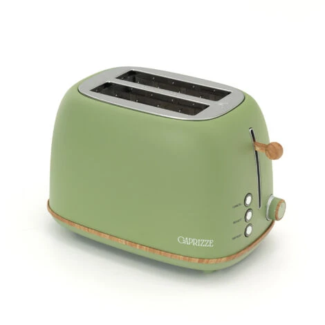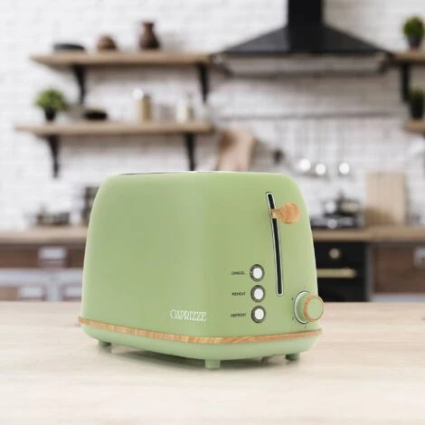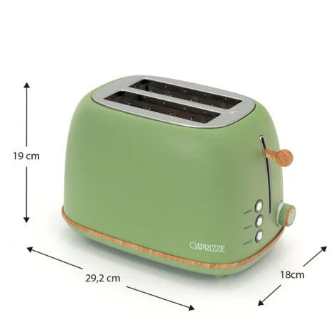 Grille Pain Caprizze Kaito Avec Double Fente Extra Large 6 Niveaux De Grill Design Vintage Avec Effet Bois Vert Mat