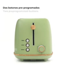 Le grille pain Caprizze Kaito est parfait pour les amateurs de design et de bonne cuisine. Vos toasts seront grillĂ©s Ă la perfection grâce Ă ses 6 niveaux rĂ©glables. Il dispose de deux fentes extra larges de 3,8 cm et 13,5 cm de long pour vous permettre de dĂ©guster n’importe quel type de pain. Ses trois fonctions intĂ©grĂ©es vous permettent de rĂ©chauffer, dĂ©congeler et arrĂŞter le grillage.nnCaractĂ©ristiques :n- Mesures : 29,2x18x19 cm.n- MatĂ©riau : acier inoxydable et polypropylène.n- Couleur : vert mat.n- Poids : 1,20 kg.n- Puissance : 815W Faible consommation.n- TempĂ©rature de travail : 6 niveaux.n- Système de sĂ©curitĂ© : Autostop.n- Thermostat : Oui.n- Tiroir Ă miettes : Oui.n- Base antidĂ©rapante : Oui.n- ContrĂ´le : Analogique.n- Protection du câble : Oui.n- Longueur du cordon : 75 cm.n- Modes/Fonctions : 3.n- Voltage : 220-240V.n- RĂ©gulateur de tempĂ©rature : Oui.n- Certificats : CE, GS, LFGB et RoHS.
