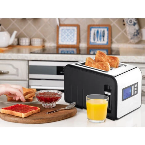 Ses larges fentes vous permettent de chauffer des tranches de différentes tailles, il comprend également un tiroir à miettes et une commande numérique avec écran LCD. Les avantages comprennent un contrôle variable du brunissement, deux modes de chauffage ou de décongélation et une fonction d’arrêt automatique.