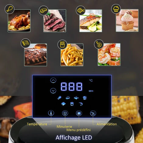 – Friteuse avec peu ou pas d’huile multifonction 7 programmes pour frire, cuire, griller, rôtir tous vos plats préférés