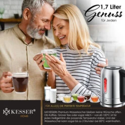 KESSER Bouilloire 2 200 W avec réglage de la température entre 60-100°C et fonction de maintien de la chaleur, filtre anticalcaire amovible avec grille en acier inoxydable, éclairage intérieur moderne.