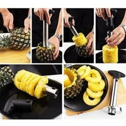 Outil 3 en 1 : fait des miracles ! Il peut être utilisé comme carottier, trancheur et éplucheur en même temps ! Meilleures utilisations : utilisez-le pour faire des salades de fruits, des tranches d’ananas, des créations d’ananas, et plus encore.