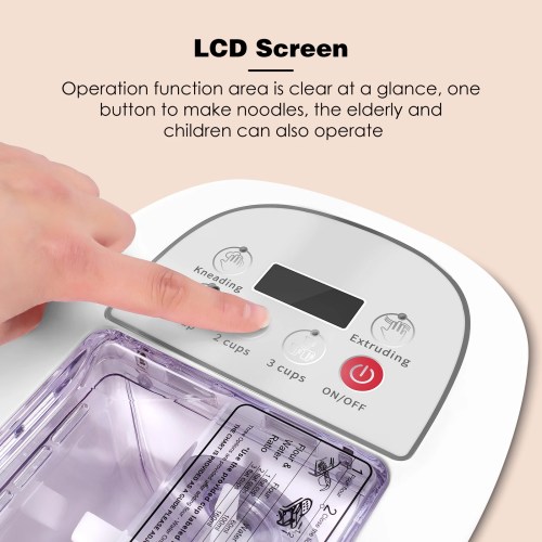 La machine à nouilles intelligente peut fabriquer des nouilles par mélange, pétrissage et extrusion automatiques, en ajoutant la proportion correspondante de farine et d’eau, en mélangeant les nouilles en 10 minutes et en sortant en 5 minutes. Il ne nécessite pas d’expérience et de compétences, et peut être utilisé par les personnes âgées et les enfants.