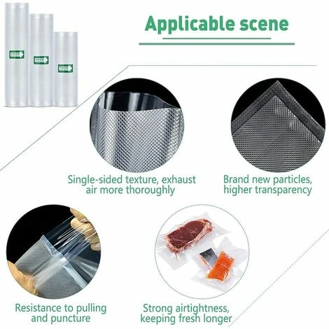 Rouleau De Sacs Sous Vide – Incroyablement flexible, offrant un ajustement tanche et garder les aliments frais pour plus longtemps. Parfait pour Stockage et cuisson. Rouleaux de scellant sous vide peuvent tre utiliss dans toutes les machines d’emballage sous vide.