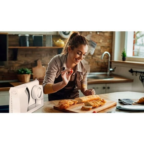 - Polyvalente : la trancheuse vous permet de couper tous les types de viande, de charcuterie, de fromage, de légumes, de pain et d’autres aliments sans effort et de manière uniforme. Elle est idéale pour une utilisation dans la cuisine domestique comme dans la cuisine du restaurant.