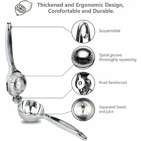【Matériau de haute qualité】Le presse-citron est fabriqué en alliage de zinc durable. Cette presse est robuste et les jus ne la laisseront pas rouiller. Un outil indispensable pour faire du jus dans n’importe quelle cuisine ou bar. C’est également une aide idéale pour préparer des salades, du poisson, des boissons et d’autres besoins culinaires. La longévité et la durabilité en font le dernier presse-agrumes dont vous n’aurez jamais besoin.