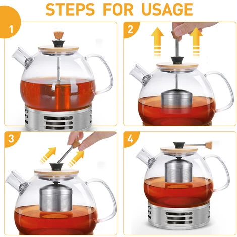 【Qualité】 La théière est fabriquée en verre borosilicate durable à haute teneur en borate et en acier inoxydable 304 de qualité alimentaire, sans BPA. La théière transparente est solide, sûre et résistante à la chaleur, et peut supporter des températures de -20 à 150 °C. (Remarque : ne chauffez pas la bouilloire directement avec une flamme nue.)