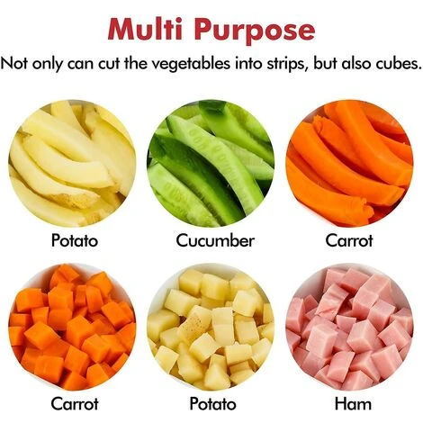 2.Parfait pour couper les pommes de terre et les carottes.Il est également idéal pour les oignons, les concombres et autres légumes