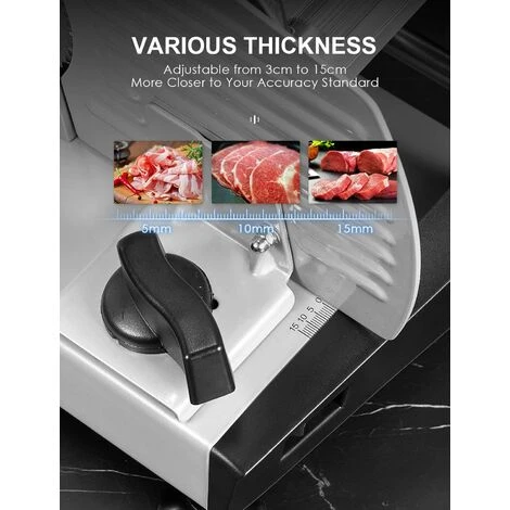 Coupe Précise : l’épaisseur réglable de 0 à 15 et la lame en acier inoxydable de 19 cm peuvent couper avec précision divers aliments, vous permettant de profiter de vos charcuteries, fromages à pate dure, fruits, légumes et même du pain préférés.