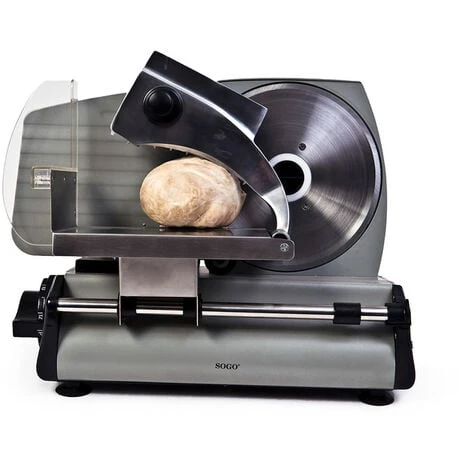 Feuille de coupe en acier inoxydable avec un diamètre de 190 mm. Système de régulation d’épaisseur professionnelle, avec des coupes en tranches minces à épaisses, avec une épaisseur allant jusqu’à 15 mm. Libération rapide pour le bar des transports alimentaires. Bouton de verrouillage instantané à utiliser en toute sécurité. Contrôle rotatif innovant pour sélectionner soigneusement l’épaisseur exacte à chaque occasion. Pusteur alimentaire avec un protecteur de sécurité du pouce. Jambes anti-discutes. Rapide et facile à nettoyer, cette machine de coupe professionnelle est idéale pour toutes les utilisations. Tension / fréquence: 220 – 240 V ~ 50 / 60Hz. Consommation d’énergie: 150W.