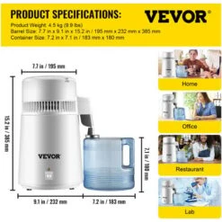 - Purification Efficace de l’Eau : Niveau de puissance : 750 W ; volume : 4 L. Ce distillateur d’eau peut distiller 6 gal / 22,7 L par jour pour éliminer les solides dissous, les COV et presque toutes les autres impuretés, vous offrant ainsi l’eau la plus pure. Idéal pour distiller de l’eau, de l’alcool, etc. Parfait pour les bureaux, les maisons, les laboratoires, les cliniques dentaires, etc.