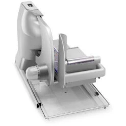 Trancheuse 17 cm – Une trancheuse domestique avec lame de coupe dentée de 17 cm démontable (lame fabriquée en Allemagne à Solingen, la ville des lames) pour découper vos charcuteries, vos fromages et même vos fruits et légumes ! – Épaisseur de coupe réglable de 0 à 15 mm (chariot 16,5 x 18,5 cm avec course de 25 cm) – Hauteur de coupe 16 cm – Presse-aliments à picots amovible – Plateau de récupération des aliments amovible – Corps, base et rail du plateau coulissant en fonte d’aluminium et surface du plateau démontable en inox – 4 pieds ventouses pour une stabilité parfaite – Puissance 150 W – Garantie 2 ans.